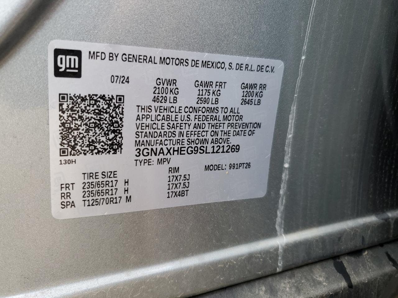 2025 CHEVROLET EQUINOX - 3GNAXHEG9SL121269, цвет - Серый, 1.5, Бензин, из США