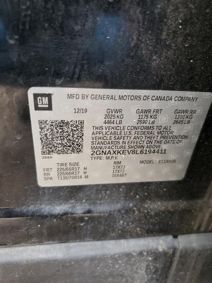 2020 CHEVROLET EQUINOX - 2GNAXKEV8L6194411, цвет - Черный, 1.5, Бензин, из США