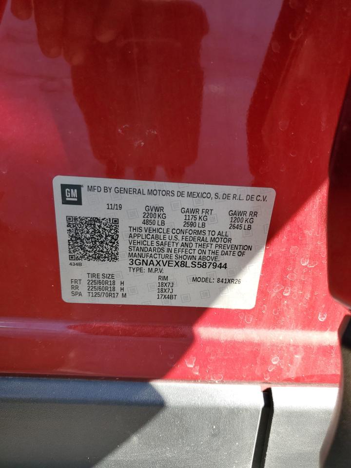 2020 CHEVROLET EQUINOX - 3GNAXVEX8LS587944, цвет - Красный, 2.0, Бензин, Полный привод из США
