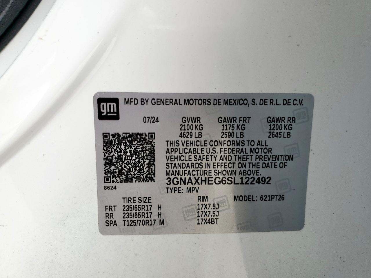 2025 CHEVROLET EQUINOX - 3GNAXHEG6SL122492, цвет - Белый, 1.5, Бензин, из США