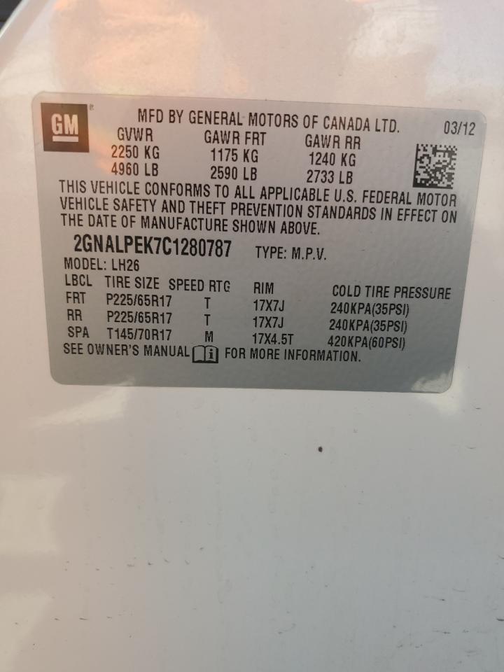 2012 CHEVROLET EQUINOX - 2GNALPEK7C1280787, цвет - Белый, 2.4, Бензин, из США