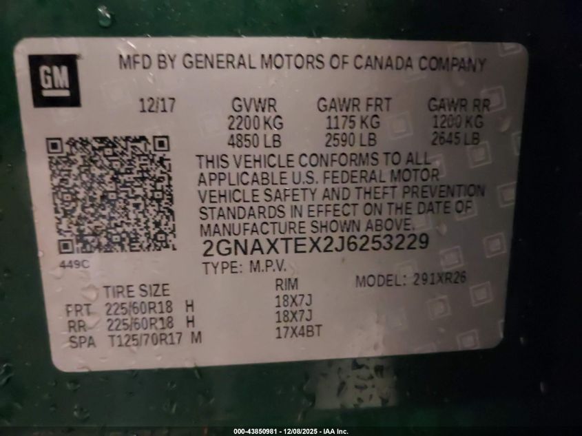 2018 CHEVROLET EQUINOX - 2GNAXTEX2J6253229, цвет - Зеленый, 2.0, Бензин, Полный привод из США