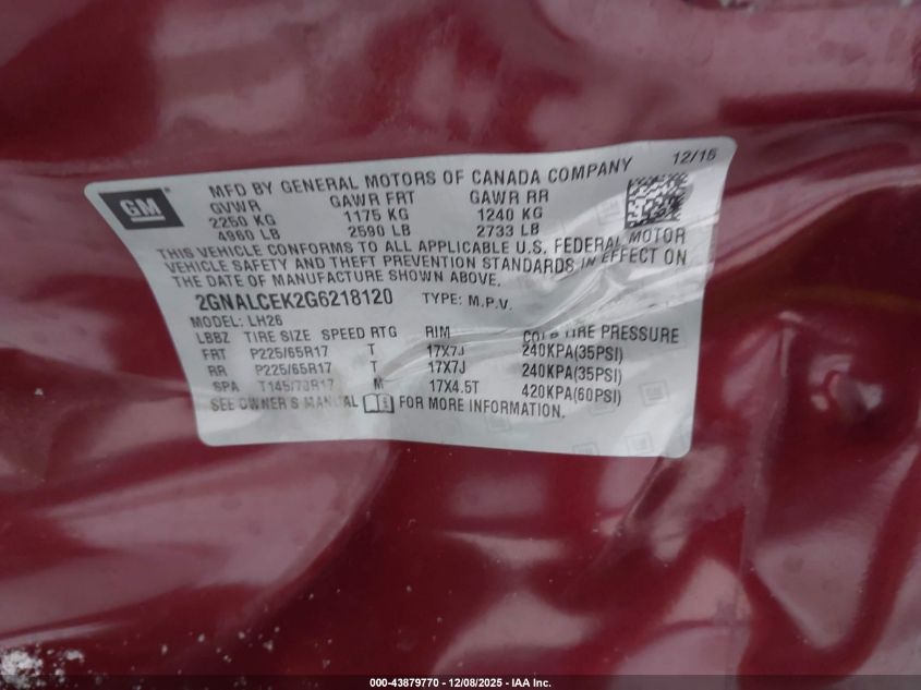 2016 CHEVROLET EQUINOX - 2GNALCEK2G6218120, цвет - Коричневий, 2.4, Бензин, Передний привод из США