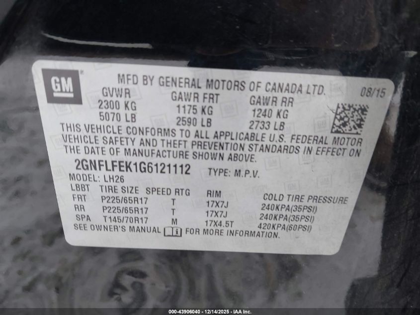 Цвет ЧерныйЦилиндры 4Привод Полный приводVIN 2GNFLFEK1G6121112Состояние Заводится и едет (проверено)Повреждения Передняя или задняя