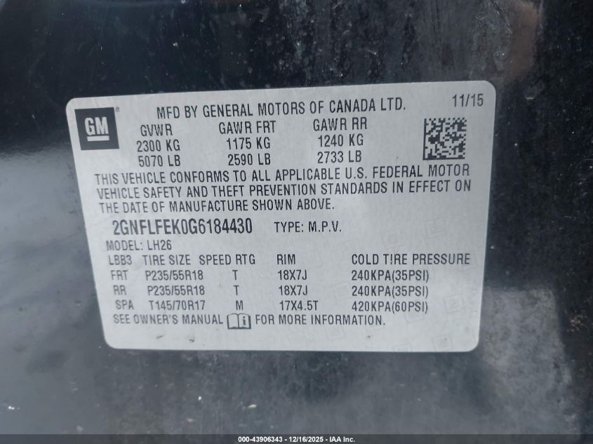 Цвет ЧерныйЦилиндры 4Привод Полный приводVIN 2GNFLFEK0G6184430Состояние НеизвестноПовреждения Обычный износ