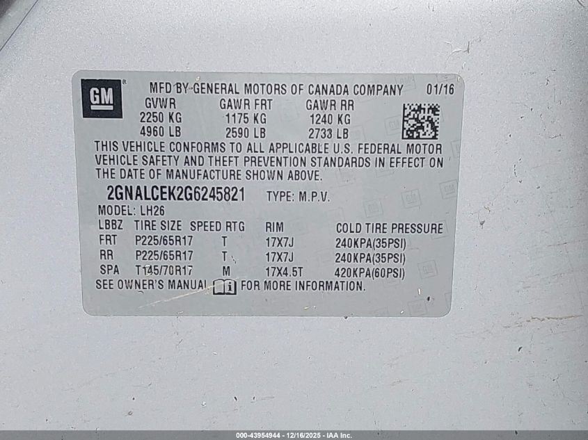 2016 CHEVROLET EQUINOX - 2GNALCEK2G6245821, цвет - Серебряный, 2.4, Бензин, Передний привод из США