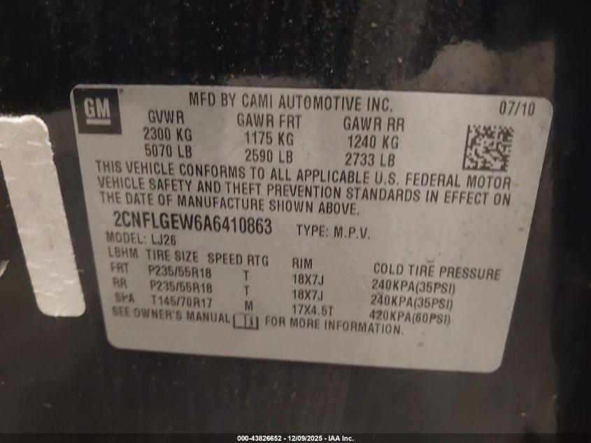 2010 CHEVROLET EQUINOX - 2CNFLGEW6A6410863, цвет - Черный, 2.4, Бензин, Полный привод из США