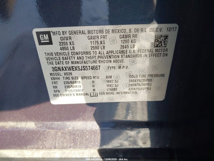 Цвет СинийЦилиндры 4Привод Полный приводVIN 3GNAXWEX5JS574667Состояние СтационарноПовреждения Передняя или задняя