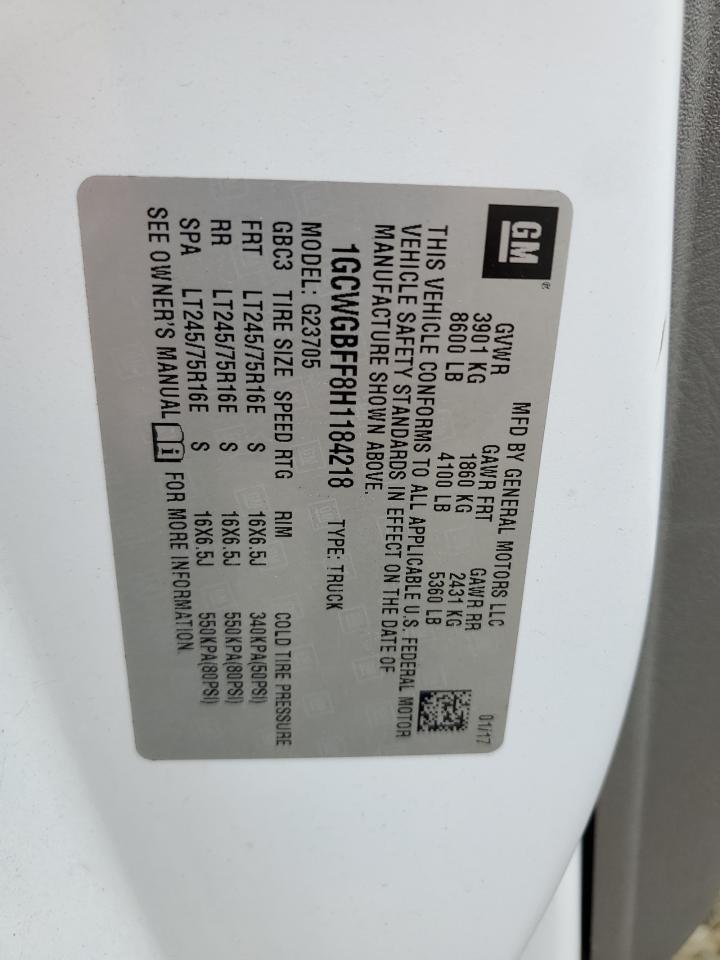 2017 CHEVROLET EXPRESS - 1GCWGBFF8H1184218, цвет - Белый, 4.8, Бензин, Задний привод из США