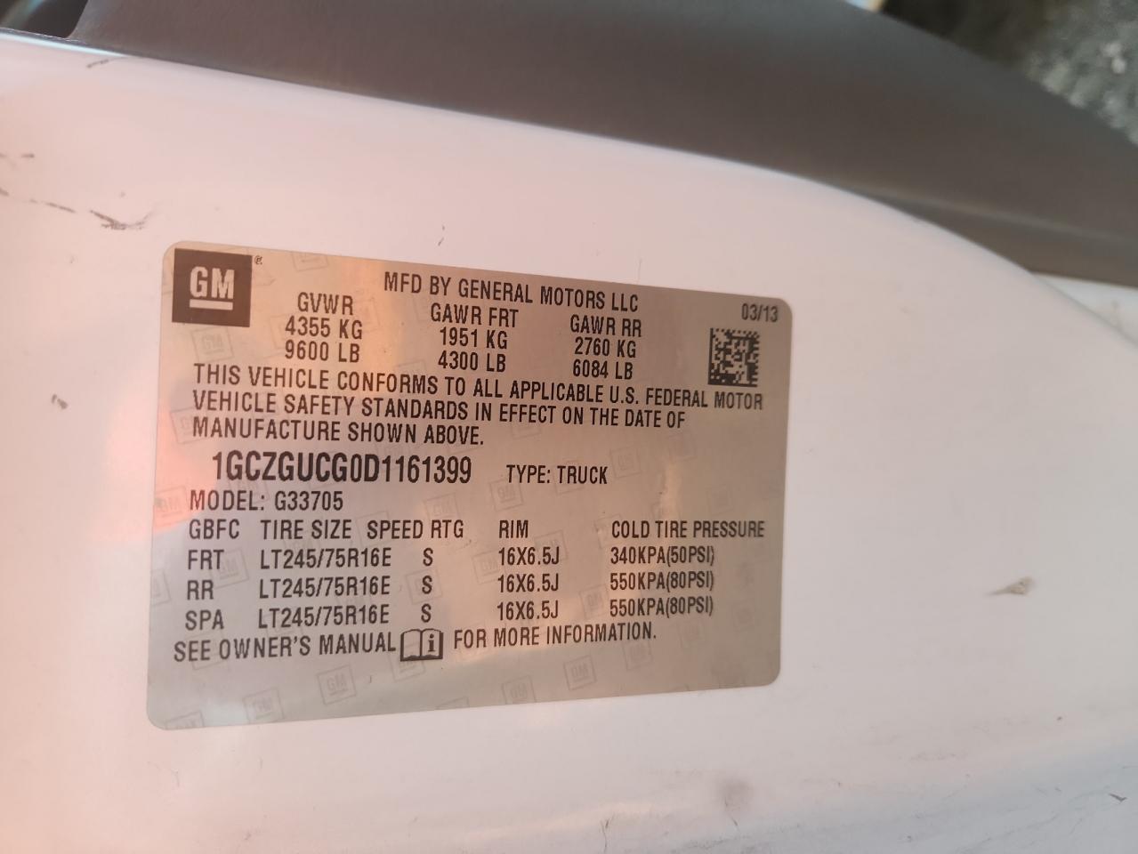 Цвет БелыйЦилиндры 8Привод Задний приводVIN 1GCZGUCG0D1161399Состояние НеизвестноПовреждения Передняя или задняяДата аукциона 2025-10-08