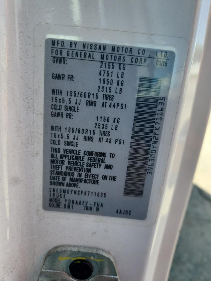 2015 CHEVROLET EXPRESS - 3N63M0YN2FK711635, цвет - Белый, 2.0, Бензин, из США