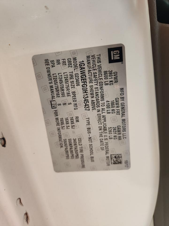 2017 CHEVROLET EXPRESS - 1GAWGEFG0H1345437, цвет - Белый, 6.0, Бензин, Задний привод из США