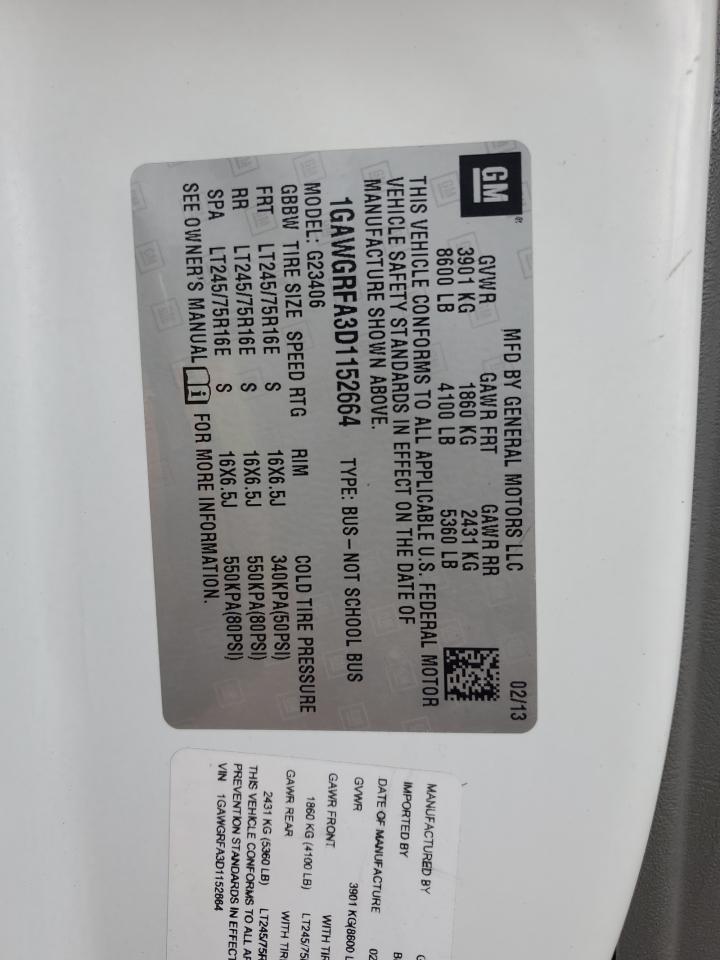 2013 CHEVROLET EXPRESS - 1GAWGRFA3D1152664, цвет - Белый, 4.8, Бензин, Задний привод из США