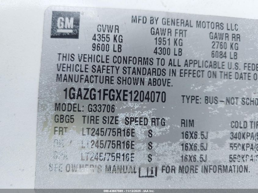 2014 CHEVROLET EXPRESS - 1GAZG1FGXE1204070, цвет - Белый, 6.0, Бензин, Задний привод из США