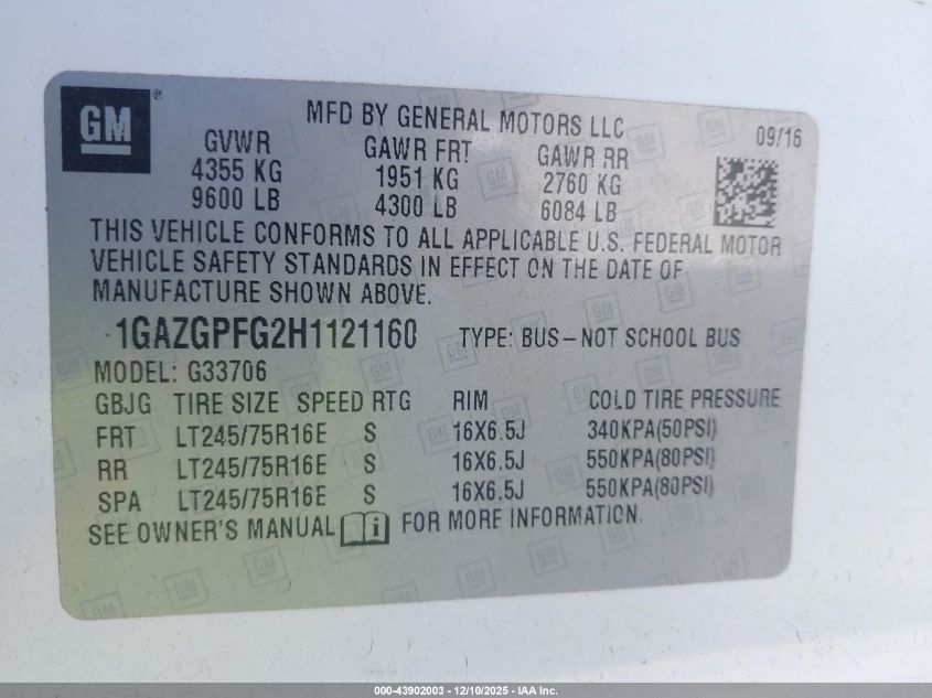 2017 CHEVROLET EXPRESS - 1GAZGPFG2H1121160, цвет - Белый, 6.0, Бензин, Задний привод из США