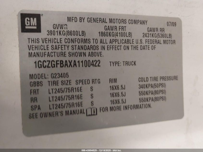 Цвет Цилиндры 8Привод Задний приводVIN 1GCZGFBAXA1100422Состояние НеизвестноПовреждения Обычный износ