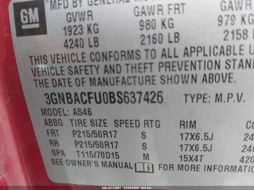 Цвет КрасныйЦилиндры 4Привод Передний приводVIN 3GNBACFU0BS637426Состояние Заводится и едет (проверено)Повреждения Передняя или задняя