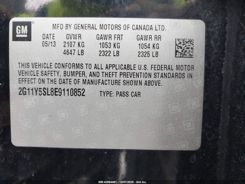 Цвет ЧерныйЦилиндры 4Привод Передний приводVIN 2G11Y5SL8E9110852Состояние СтационарноПовреждения ВандализмДата аукциона 2025-12-18