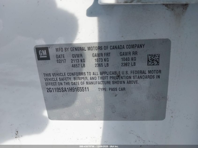 2017 CHEVROLET IMPALA - 2G1105SA1H9165511, цвет - Черный, 2.5, Бензин, Передний привод из США