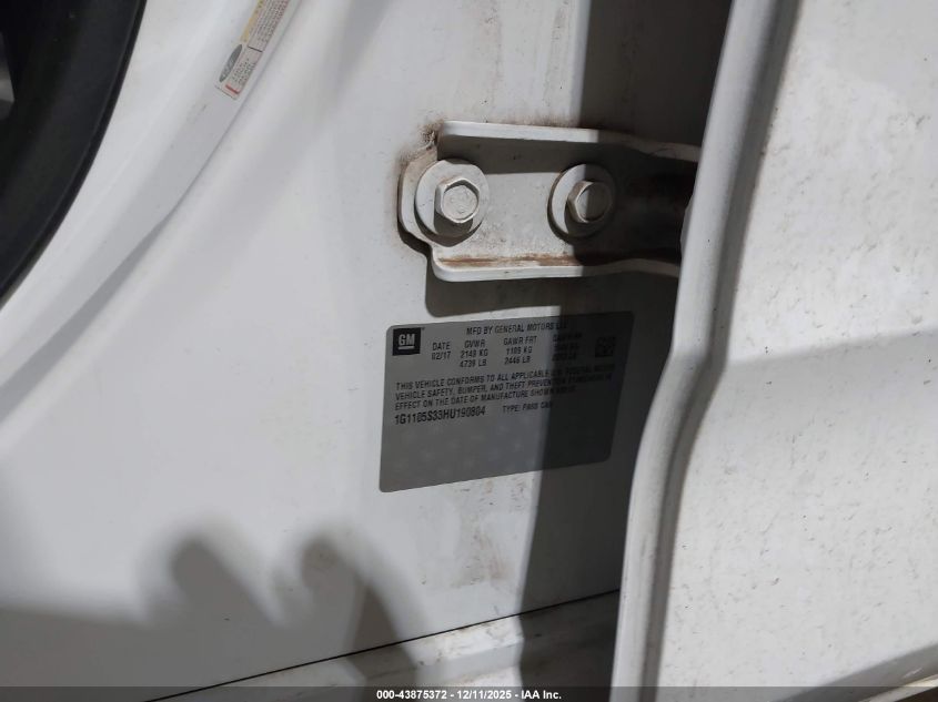 2017 CHEVROLET IMPALA - 1G1105S33HU190804, цвет - Белый, 3.6, Бензин, Передний привод из США