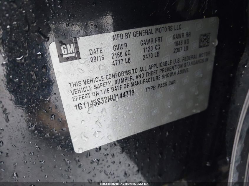 2017 CHEVROLET IMPALA - 1G1145S32HU144773, цвет - Черный, 3.6, Бензин, Передний привод из США