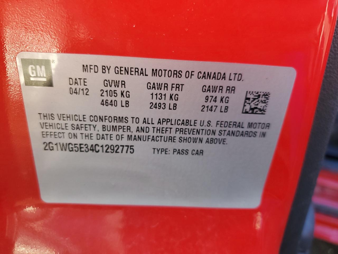 Цвет КрасныйЦилиндры 6VIN 2G1WG5E34C1292775Состояние НеизвестноПовреждения Передняя или задняя
