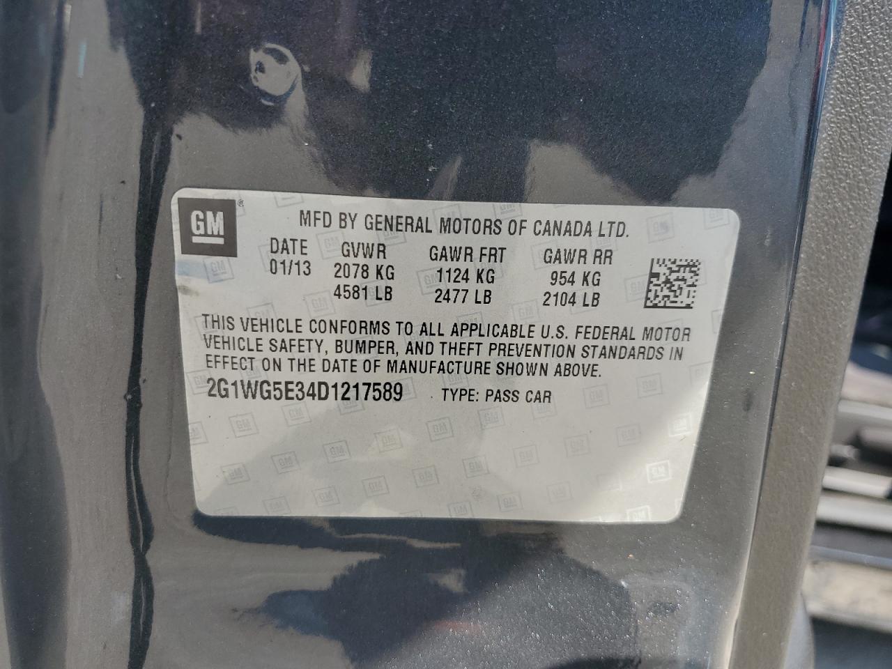 Цвет Древесный угольЦилиндры 6VIN 2G1WG5E34D1217589Состояние НеизвестноПовреждения Передняя или задняя