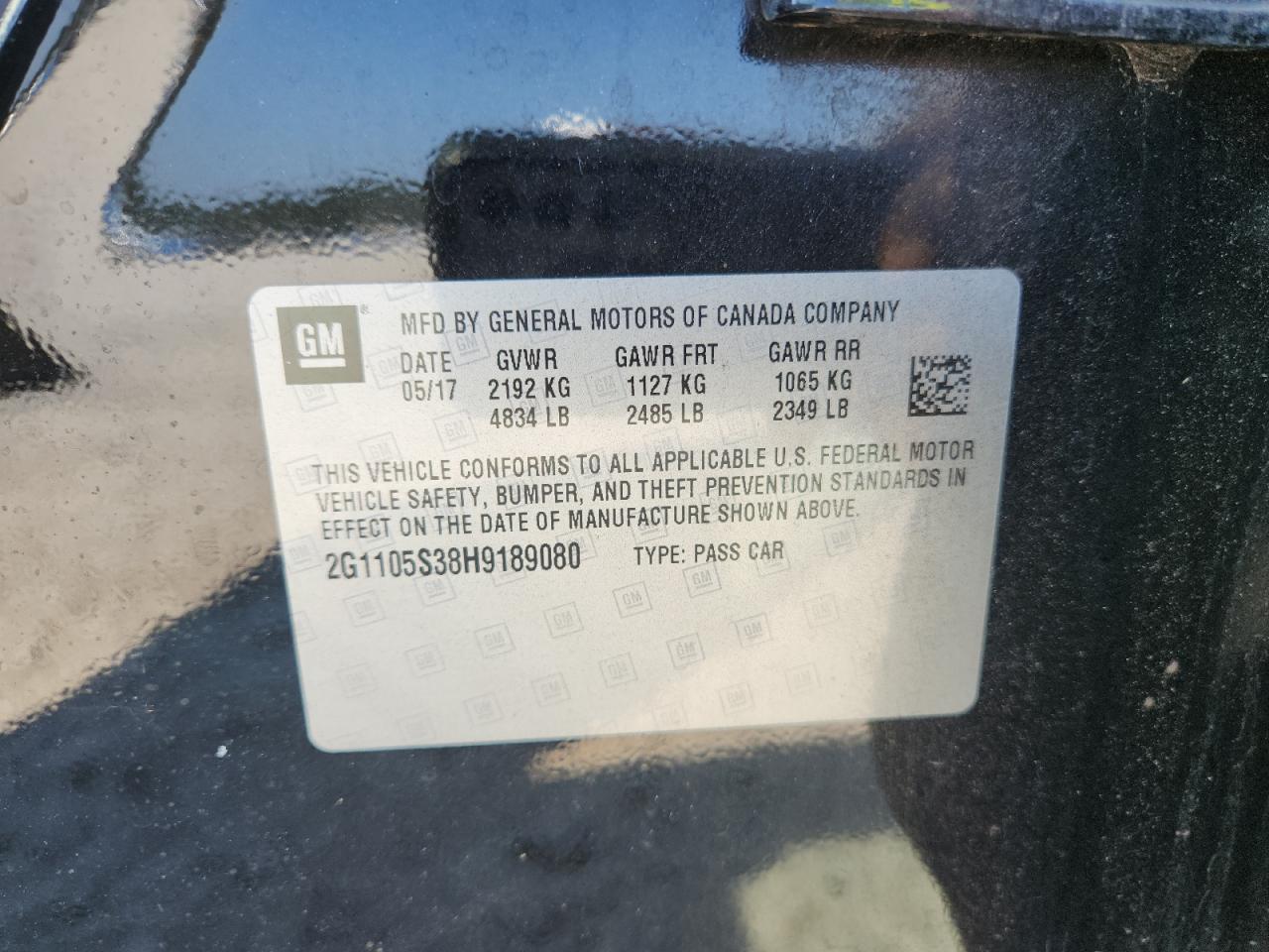 2017 CHEVROLET IMPALA - 2G1105S38H9189080, цвет - Черный, 3.6, Бензин, из США