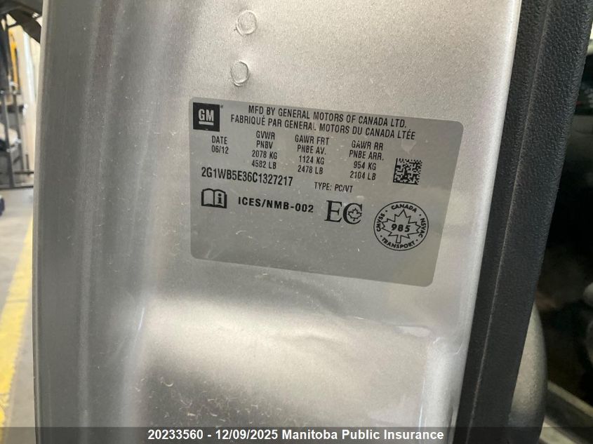 Цвет СерыйЦилиндры 6Привод Передний приводVIN 2G1WB5E36C1327217Состояние СтационарноПовреждения НеизвестноДата аукциона 2025-12-17