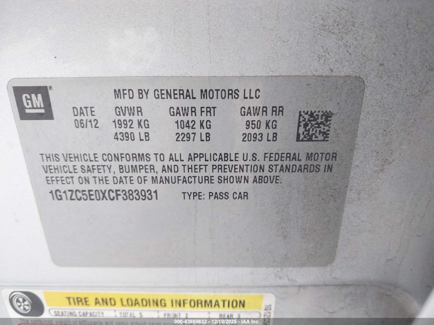 2012 CHEVROLET MALIBU - 1G1ZC5E0XCF383931, цвет - Серебряный, 2.4, Бензин, Передний привод из США