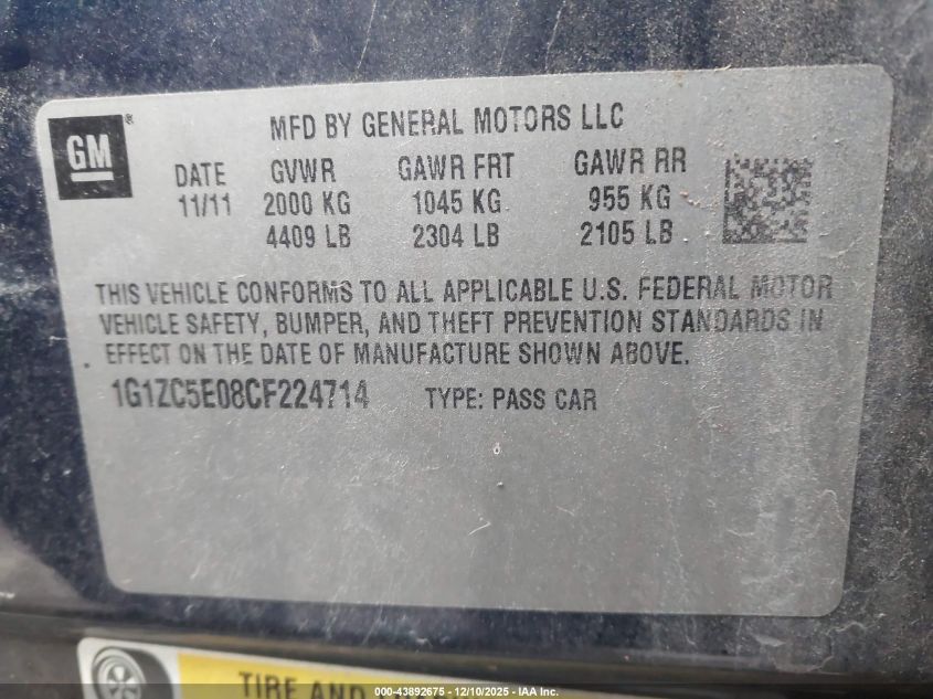 Цвет СинийЦилиндры 4Привод Передний приводVIN 1G1ZC5E08CF224714Состояние Заводится и едет (проверено)Повреждения Передняя или задняя