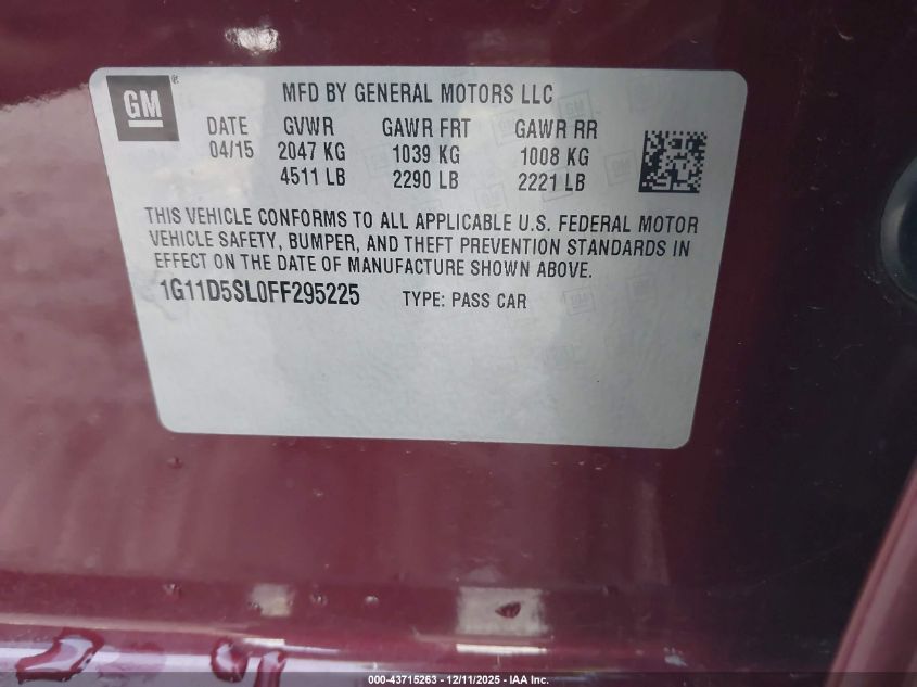 2015 CHEVROLET MALIBU - 1G11D5SL0FF295225, цвет - Бордовый, 2.5, Бензин, Передний привод из США
