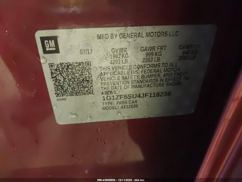 2018 CHEVROLET MALIBU - 1G1ZF5SU4JF118238, цвет - Красный, 1.8, Гибрид, Передний привод из США