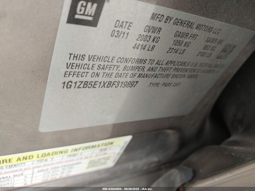Цвет КоричневийЦилиндры 4Привод Передний приводVIN 1G1ZB5E1XBF319897Состояние СтационарноПовреждения Обычный износ