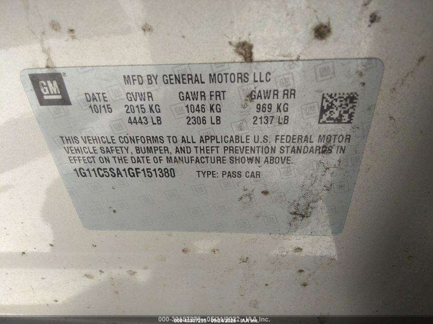 2016 CHEVROLET MALIBU - 1G11C5SA1GF151380, цвет - Загар, 2.5, Бензин, Передний привод из США