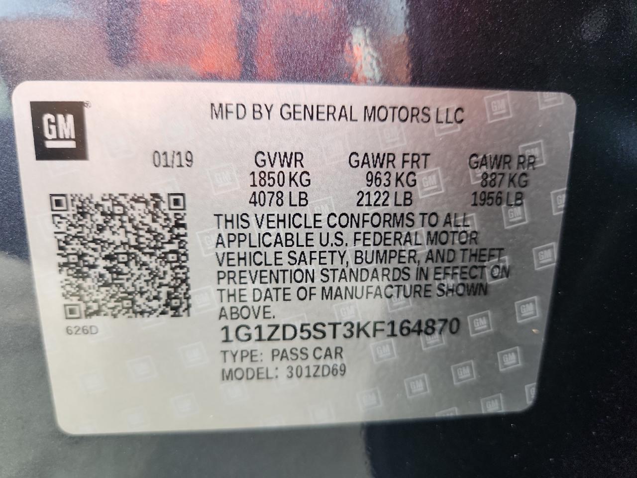 2019 CHEVROLET MALIBU - 1G1ZD5ST3KF164870, цвет - Серый, 1.5, Бензин, из США
