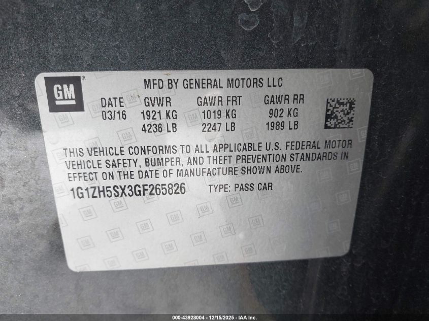 Цвет СерыйЦилиндры 4Привод Передний приводVIN 1G1ZH5SX3GF265826Состояние НеизвестноПовреждения Задняя левая