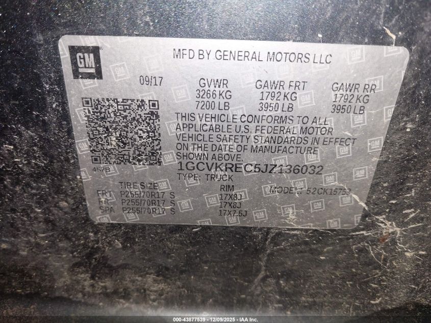 Цвет ЧерныйЦилиндры 8Привод Полный приводVIN 1GCVKREC5JZ136032Состояние СтационарноПовреждения Опрокидывание