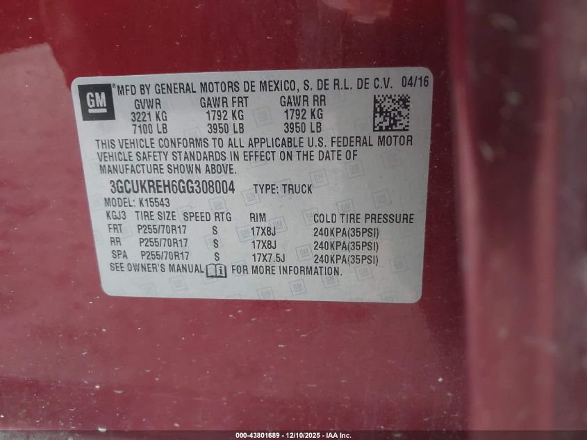 Цвет КрасныйЦилиндры 6Привод Полный приводVIN 3GCUKREH6GG308004Состояние Заводится и едет (проверено)Повреждения Передняя и задняя