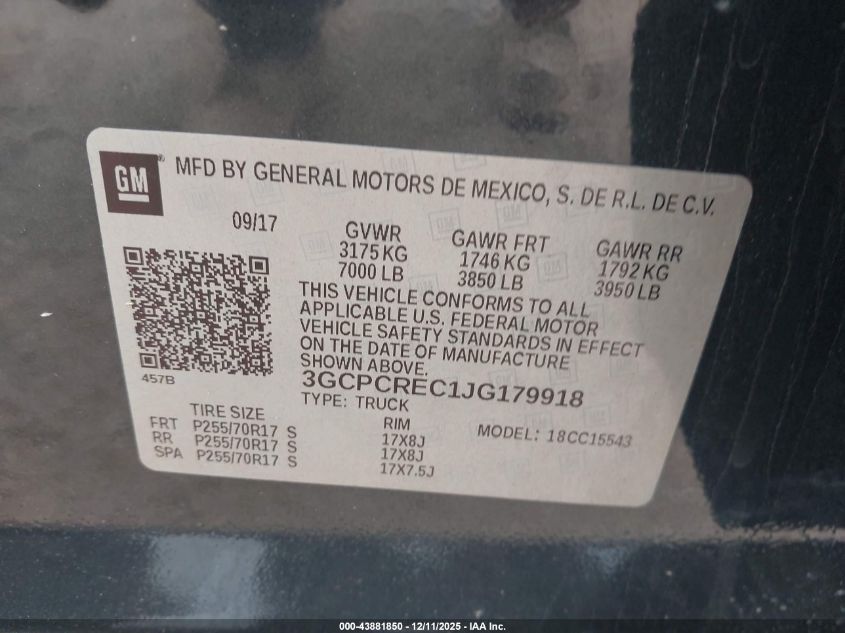 Цвет СерыйЦилиндры 8VIN 3GCPCREC1JG179918Состояние Заводится и едет (проверено)Повреждения Левая сторона