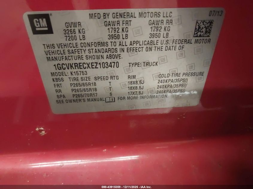 Цвет КрасныйЦилиндры 8Привод Полный приводVIN 1GCVKRECXEZ103470Состояние СтационарноПовреждения По всему автоДата аукциона 2025-12-18
