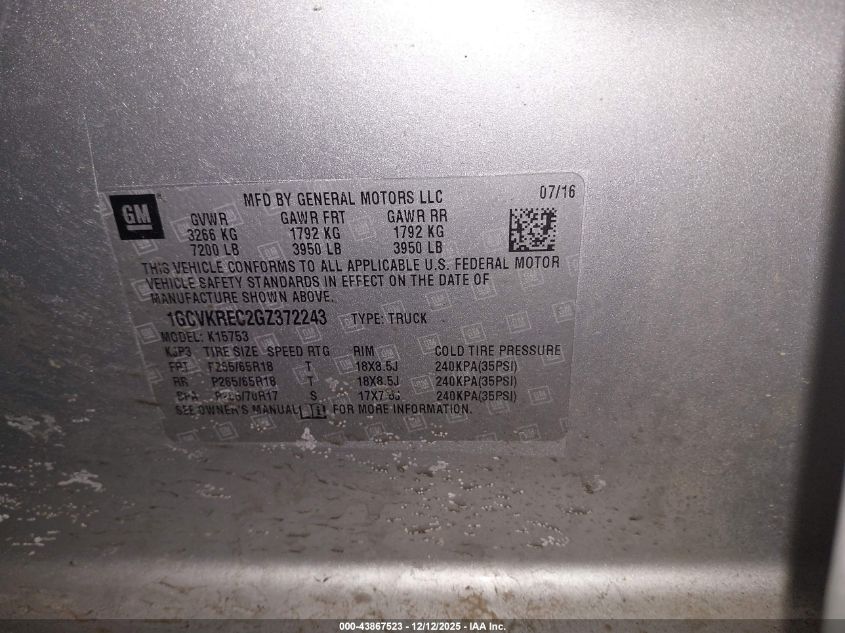 2016 CHEVROLET SILVERADO 1500 - 1GCVKREC2GZ372243, цвет - Серый, 5.3, Бензин, Полный привод из США