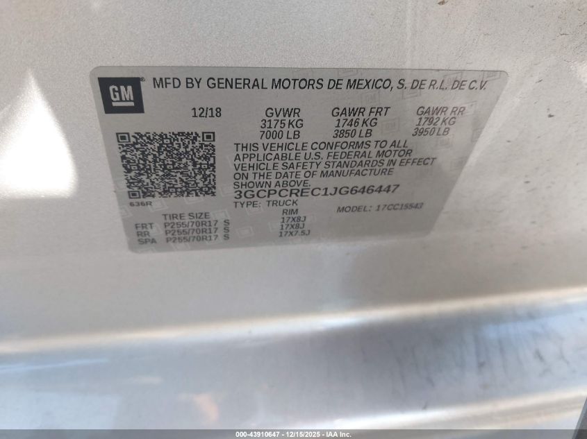 Цвет БелыйЦилиндры 8VIN 3GCPCREC1JG646447Состояние СтационарноПовреждения Передняя или задняя