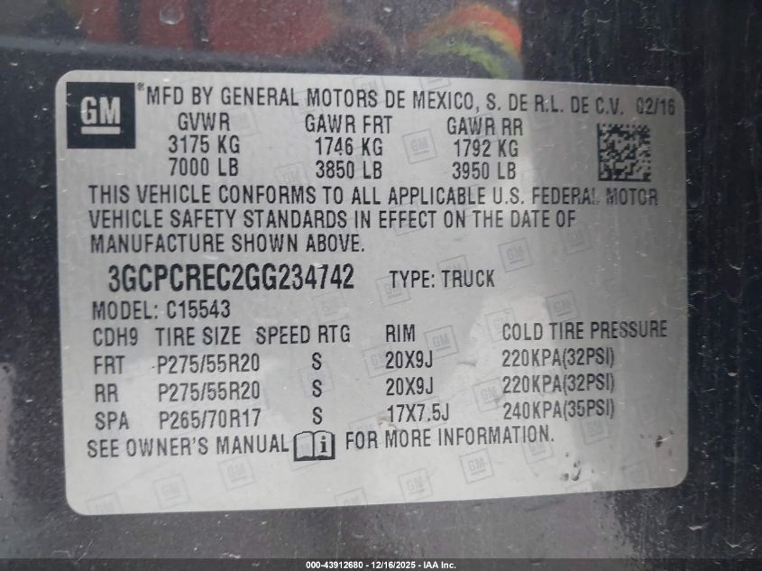 Цвет СерыйЦилиндры 8VIN 3GCPCREC2GG234742Состояние НеизвестноПовреждения Передняя или задняя