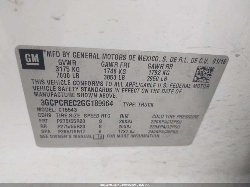 Цвет Цилиндры 8VIN 3GCPCREC2GG189964Состояние НеизвестноПовреждения Неизвестно