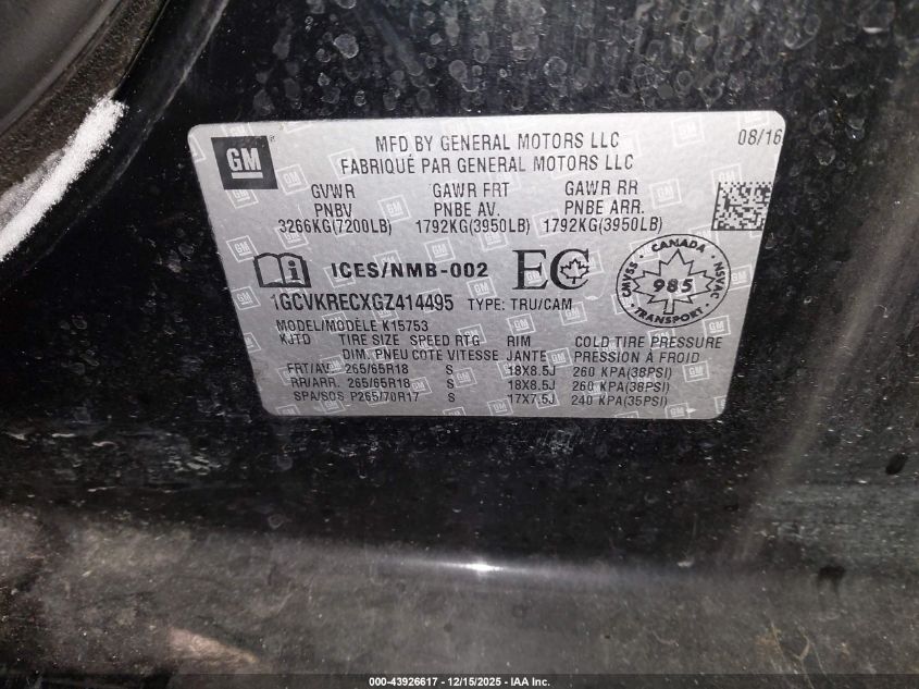 2016 CHEVROLET SILVERADO 1500 - 1GCVKRECXGZ414495, цвет - Черный, 5.3, Бензин, Полный привод из США