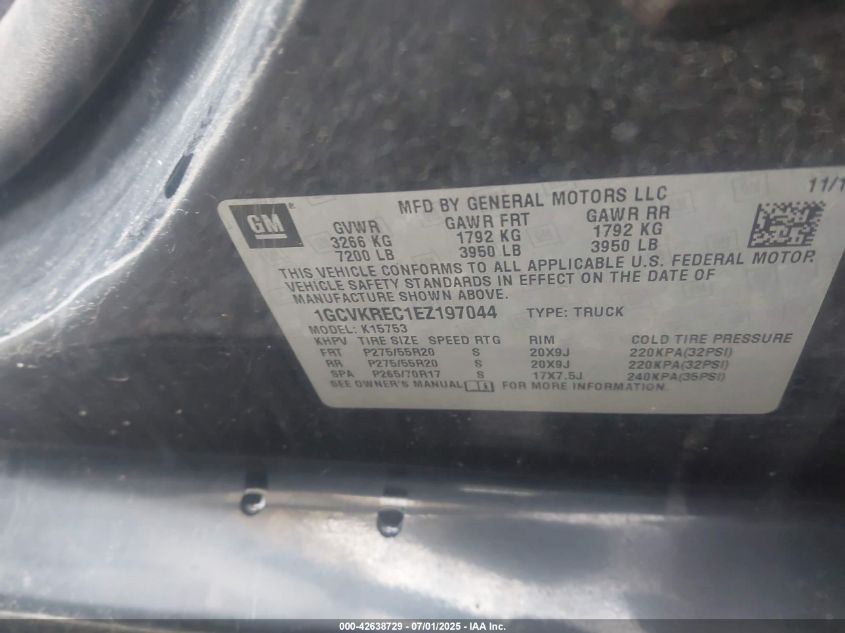 2014 CHEVROLET SILVERADO 1500 - 1GCVKREC1EZ197044, цвет - Черный, 5.3, Бензин, Полный привод из США