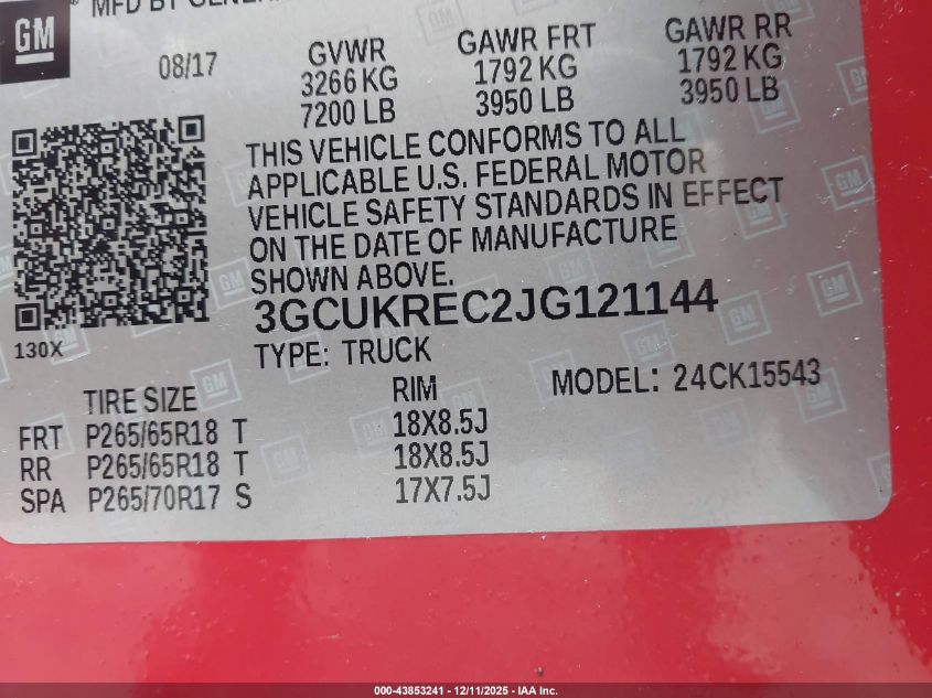 Цвет КрасныйЦилиндры 8Привод Полный приводVIN 3GCUKREC2JG121144Состояние Заводится и едет (проверено)Повреждения Правая сторона