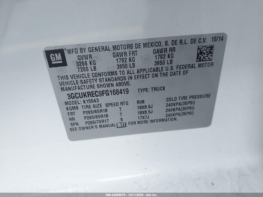 Цвет БелыйЦилиндры 8Привод Полный приводVIN 3GCUKREC9FG168419Состояние Заводится и едет (проверено)Повреждения Опрокидывание