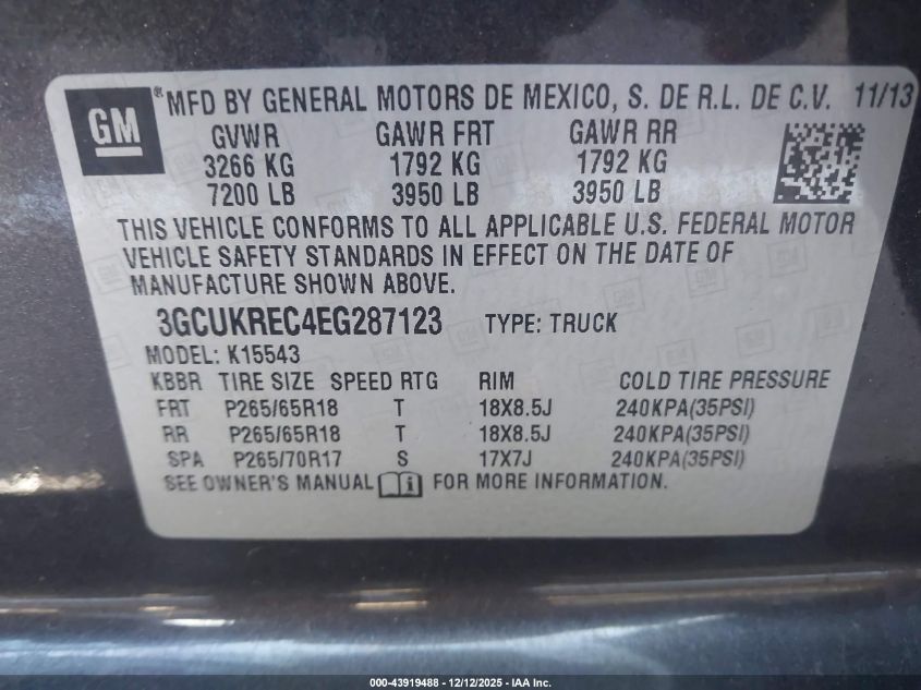 Цвет КоричневийЦилиндры 8Привод Полный приводVIN 3GCUKREC4EG287123Состояние СтационарноПовреждения Задняя левая